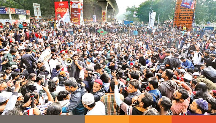 হাদি হত্যার বিচার দাবিতে সংহতি জানিয়ে উত্তরা থেকে আইইউবিএটি, শান্ত মারিয়াম, উত্তরা ইউনিভার্সিটি ও বিজিএমইএ বিশ্ববিদ্যালয়ের শিক্ষার্থীরা শাহবাগে এসে যোগ দেয়। এ সময় ‘এ লড়াইয়ে জিতবে কারা, হাদির সৈনিকেরা’, ‘নারায়ে তাকবীর, আল্লাহু আকবার’, ‘ইনকিলাব ইনকিলাব, জিন্দাবাদ-জিন্দাবাদ’, ‘শাহবাগ না ইনসাফ, ইনসাফ-ইনসাফ’সহ নানা স্লোগান দেন।
