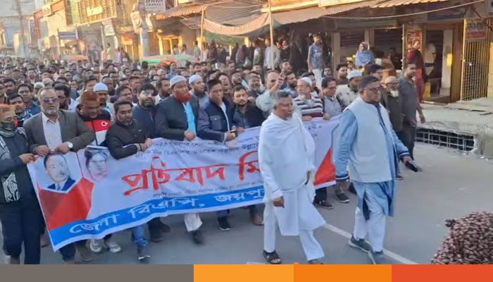 ইনকিলাব মঞ্চের আহ্বায়ক শরিফ ওসমান হাদির ওপর গুলিবর্ষণের ঘটনার প্রতিবাদে জয়পুরহাটে বিক্ষোভ মিছিল করেছে করেছে জেলা বিএনপি। শনিবার (১৩ ডিসেম্বর) বিকেলে কেন্দ্রীয় কর্মসূচির অংশ হিসেবে জেলা বিএনপির দলীয় কার্যালয় থেকে মিছিলটি বের হয়ে সার্কিট হাউজ মাঠে গিয়ে শেষ হয়।