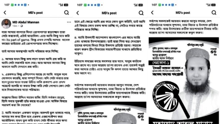 সোমবার (২ ফেব্রুয়ারি) দুপুরের দিকে আবদুল মান্নান তার ফেসবুক স্ট্যাটাসে বলেন, তাকে নিয়ে মিথ্যা প্রোপাগান্ডা ছড়ানো নতুন কিছু নয় এবং তিনি একে রাজনীতিরই একটি অংশ হিসেবে দেখেন। তবে তার ঘনিষ্ঠ কিছু মানুষ এই গুজবে বিভ্রান্ত হওয়ায় তিনি বিষয়টি পরিষ্কার করা জরুরি মনে করেছেন।