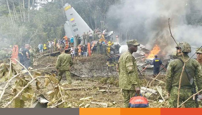 কলম্বিয়ার দক্ষিণ-পশ্চিমাঞ্চলে উড্ডয়নের কিছুক্ষণ পরই দেশটির সামরিক বাহিনীর একটি কার্গো পরিবহন বিমান বিধ্বস্ত হয়ে কমপক্ষে ৬৬ জন নিহত হয়েছেন।