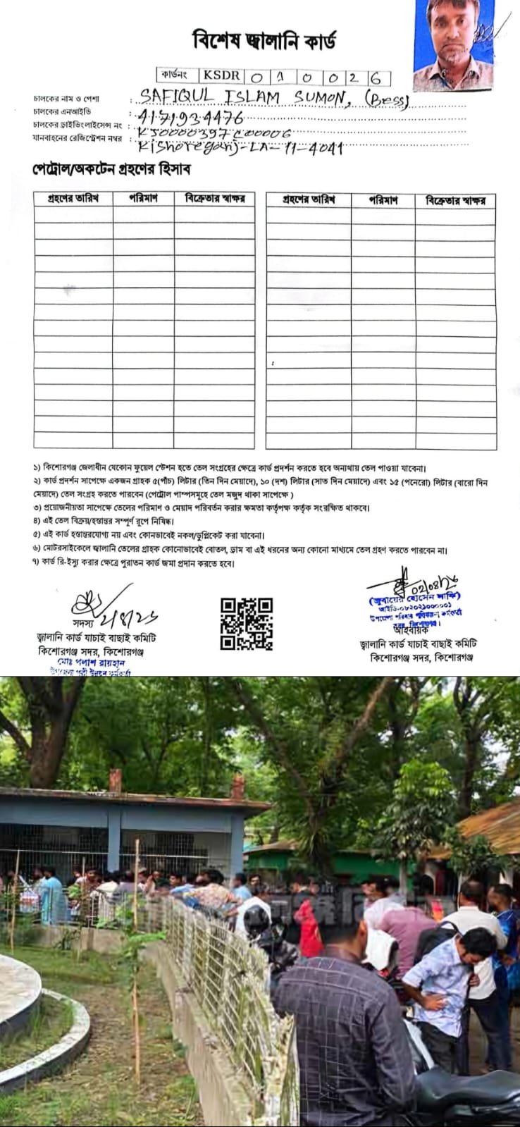 কিশোরগঞ্জ জেলাধীন যেকোনো ফুয়েল স্টেশন থেকে তেল নিতে এই কার্ড প্রদর্শন বাধ্যতামূলক।