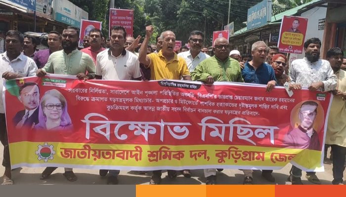 সোমবার (২১ জুলাই) দুপুরে কুড়িগ্রাম জেলা শ্রমিক দলের ব্যানারে একটি বিশাল বিক্ষোভ মিছিল শহরের গুরুত্বপূর্ণ সড়কগুলো প্রদক্ষিণ করেন।পরে জেলা কার্যালয়ের সামনে পথসভা পরিচালনা করেন সংগঠনটি।