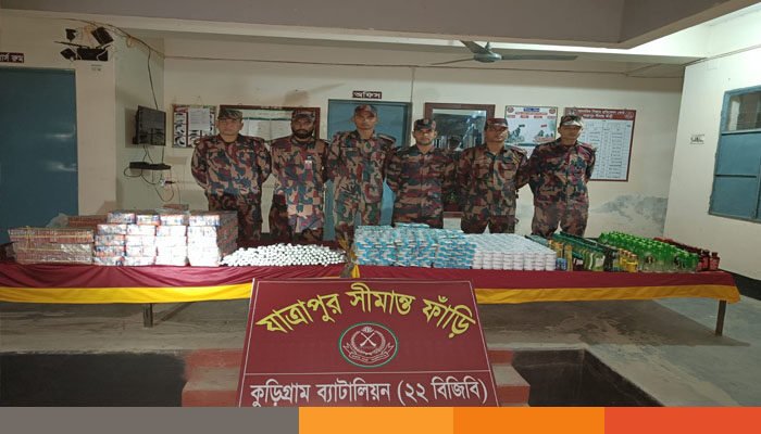 কুড়িগ্রাম সীমান্তে ব্যাটালিয়ন ২২ বিজিবি অভিযানে চালিয়ে ৩৪,৯১,৪৭৭/- (চৌত্রিশ লক্ষ একানব্বই হাজার চারশত সাতাত্তর) টাকা মূল্যের ইয়াবা, গাঁজা, মদ, গবাদিপশু, কসমেটিকস্, ভারতীয় রুপিসহ ০১ জন চোরাকারবারী এবং বিভিন্ন প্রকার অবৈধ চোরাচালানী পণ্য জব্দ করেছে।