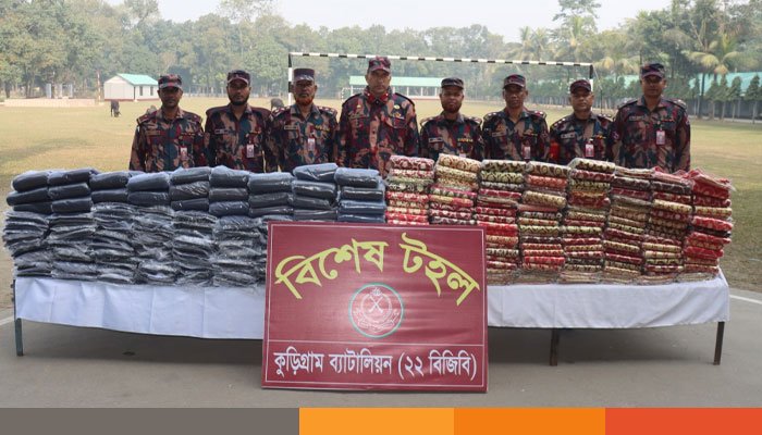 কুড়িগ্রাম ব্যাটালিয়ন ২২ বিজিবি’র বিশেষ অভিযানে বিপুল পরিমানে ভারতীয় মদ ইয়াবা শাড়ি ও গবাদিপশু জব্দ করেছে বিজিবি’র সদস্যরা।যার আনুমানিক মুল্য প্রায় ৪২ লাখ ৬৬ হাজার টাকা।