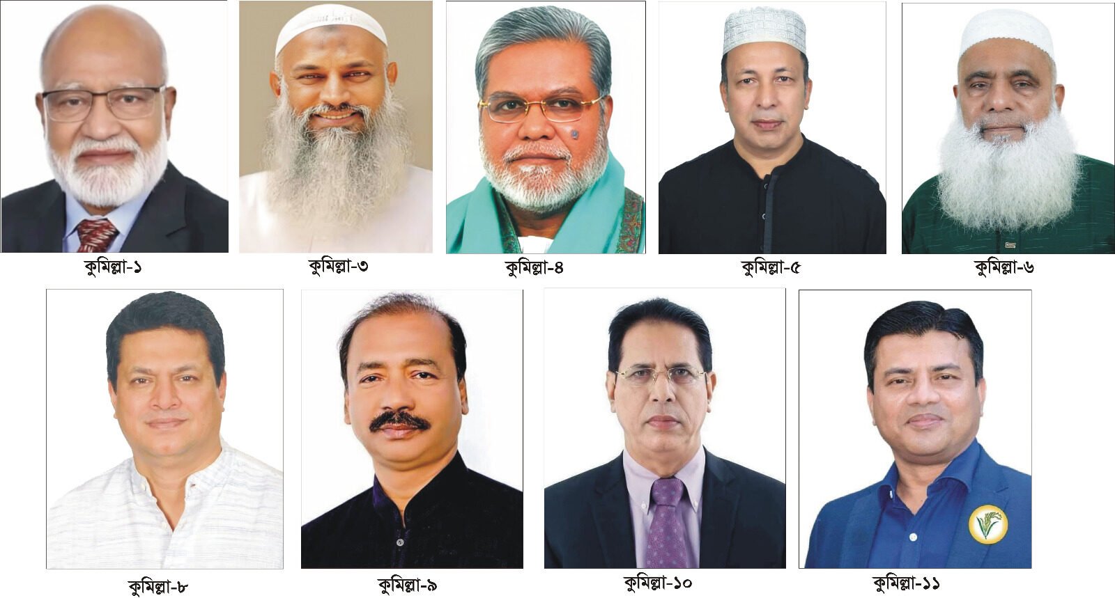 কুমিল্লার ১১ টি আসনের মধ্যে ৯টিতে যাদের নাম ঘোষণা করা হয়েছে তারা হলেন : কুমিল্লা-১ (দাউদকান্দি-মেঘনা) ড. খন্দকার মোশাররফ হোসেন, কুমিল্লা-৩ (মুরাদনগর) শাহ মোফাজ্জল হোসেন কায়কোবাদ, কুমিল্লা-৪ (দেবিদ্বার) ইঞ্জিনিয়ার মনজুরুল আহসান মুন্সী, কুমিল্লা-৫ (বুড়িচং ব্রাহ্মণপাড়া) জসীম উদ্দীন, কুমিল্লা-৬ (আদর্শ সদর, সদরদক্ষিণ, সিটি করপোরেশন) মনিরুল হক চৌধুরি, কুমিল্লা-৮ (বরুড়া) জাকারিয়া তাহের সুমন, কুমিল্লা-৯ (লাকসাম-মনোহরগঞ্জ) আবুল কালাম, কুমিল্লা-১০ (নাঙ্গলকোট-লালমাই) আব্দুল গফুর ভুঁইয়া ও কুমিল্লা-১১ (চৌদ্দগ্রাম) আসনে কামরুল হুদা। কুমিল্লা-৭ (চান্দিনা) ও কুমিল্লা-২ (হোমনা, তিতাস) আসনে প্রার্থীর নাম পরে ঘোষণা করা হবে বলে সংবাদ সম্মেলনে জানানো হয়।