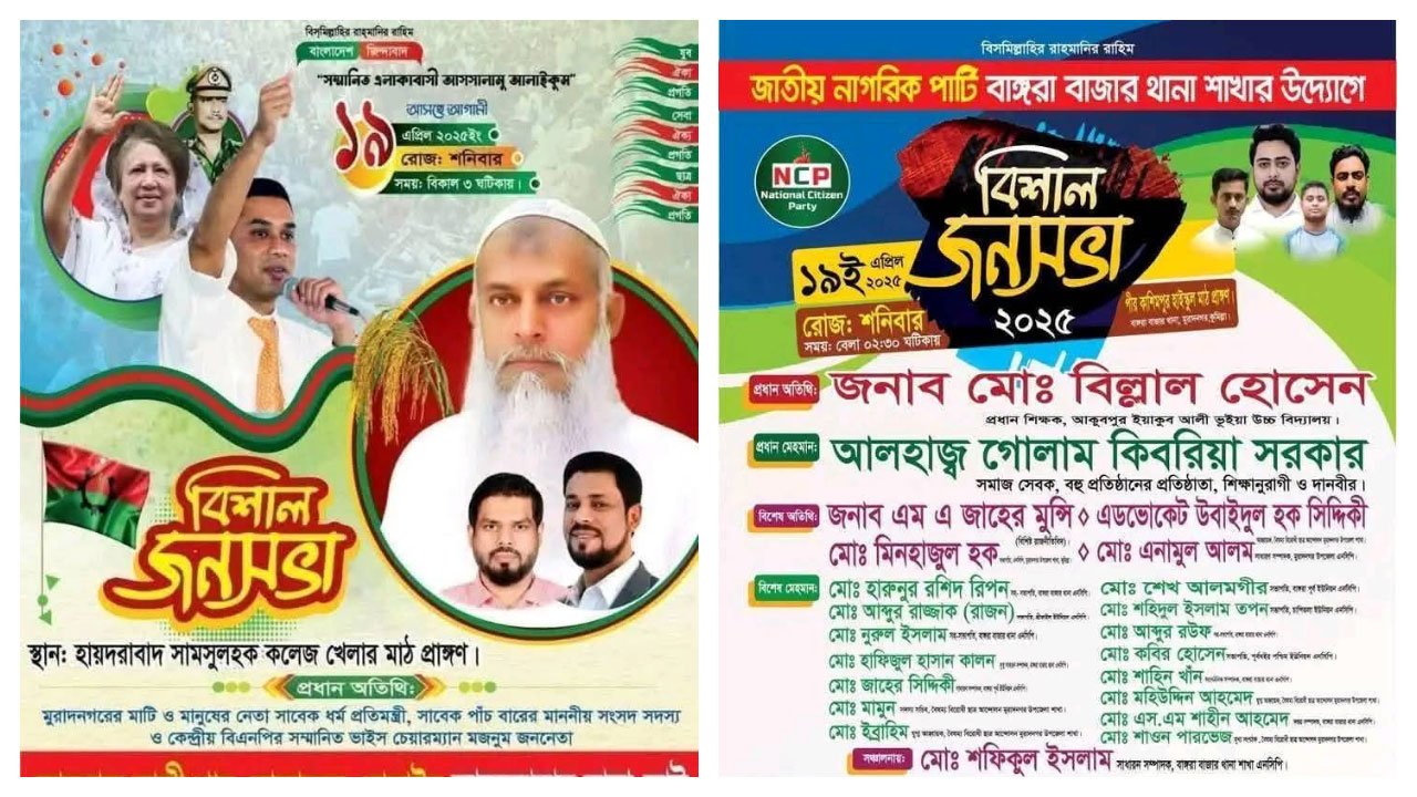 অপরদিকে জাতীয় নাগরিক পার্টির (এনপিসি) নেতারা বলেন, তারাও একই দিনে (শনিবার) একই সময়ে বিএনপির সভাস্থলের পার্শ্ববর্তী আকবপুর ইউনিয়নের পীর কাশিমপুর হাইস্কুল মাঠে বাঙ্গরা বাজার শাখার উদ্যোগে জনসভার ডাক দিয়েছে। ওই জনসভায় প্রধান অতিথি হিসেবে অন্তর্বর্তী সরকারের স্থানীয় সরকার ও ক্রীড়া উপদেষ্টা আসিফ মাহমুদ সজিব ভূঁইয়ার বাবা মো. বিল্লাল হোসেন মাস্টারের নামে পোস্টার সাটানোসহ প্রচারণা চালানো হচ্ছে।