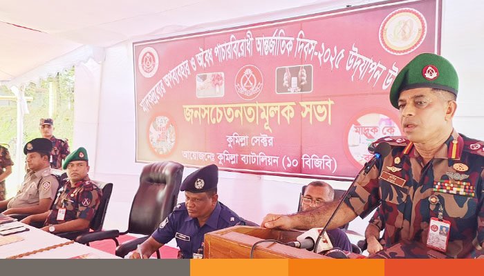 মাদকদ্রব্যের অপব্যবহার ও অবৈধ পাচারবিরোধী আন্তর্জাতিক দিবস উপলক্ষে কুমিল্লা ব্যাটালিয়ন (১০ বিজিবি) সীমান্তবর্তী এলাকায় মাদক বিরোধী জনসচেতনতামূলক সভার আয়োজন করে।