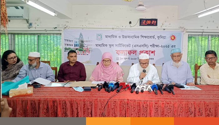 কুমিল্লা মাধ্যমিক ও উচ্চমাধ্যমিক শিক্ষা বোর্ডের অধীনে ২০২৫ সালের এসএসসি পরীক্ষার ফলাফল বৃহস্পতিবার (১০ জুলাই) দুপুরে প্রকাশিত হয়েছে। এ বছর বোর্ডের গড় পাসের হার ৬৩ দশমিক ৬০ শতাংশ। জিপিএ-৫ পেয়েছে ৯ হাজার ৯০২ জন। শতভাগ পাস করেছে ২২টি শিক্ষা প্রতিষ্ঠান।