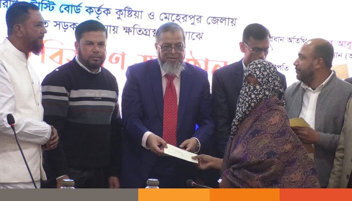 কুষ্টিয়ায় সড়ক দুর্ঘটনায় হতাহতদের পরিবারের সদস্যদের হাতে সরকারি অনুদানের চেক তুলে দেওয়া হয়েছে। বৃহস্পতিবার ১৫ জানুয়ারি) দুপুরে বাংলাদেশ সড়ক পরিবহন কর্তৃপক্ষের (বিআরটিএ) ট্রাস্টি বোর্ডের উদ্যোগে কুষ্টিয়া ও মেহেরপুরে সড়ক দুর্ঘটনায় ক্ষতিগ্রস্তদের মাঝে দুই কোটি ৮০ লাখ টাকার চেক বিতরণ করা হয়।