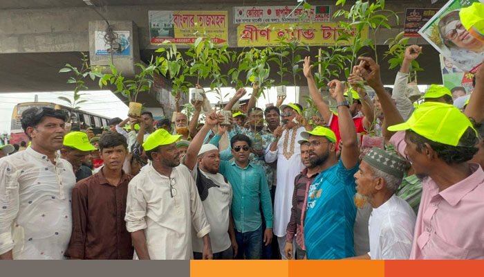 কৃষক দলের বিক্ষোভ মিছিল ও নেতা-কর্মীদের মাঝে চারা বিতরণ
