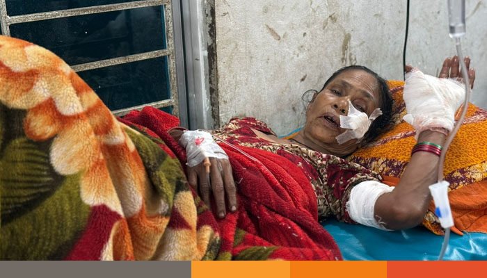 কোটালীপাড়া উপজেলা স্বাস্থ্য ও পরিবার পরিকল্পনা অফিসার কুমার মৃদুল দাস বলেন, মহিলার বাম হাতের বৃদ্ধা আঙ্গুলের নিচে গভীর ক্ষত হয়েছে। এছাড়া গাল ও বাম হাতের কনুইয়ের উপরে কেটে গেছে। প্রাথমিক চিকিৎসা শেষে উন্নত চিকিৎসার জন্য ঢাকায় পাঠানো হয়েছে।