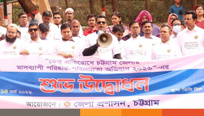 চট্টগ্রাম জেলা প্রশাসনের উদ্যোগে ডেঙ্গু প্রতিরোধে জনসচেতনতা বৃদ্ধি ও মাসব্যাপী পরিচ্ছন্নতা কার্যক্রম শুরু হয়েছে। শনিবার (১৪ মার্চ) নগরের ডিসি হিল প্রাঙ্গণে এ কর্মসূচির উদ্বোধন করা হয়।