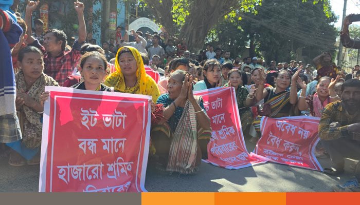 খাগড়াছড়িতে বন্ধ ইটভাটা চালুর দাবিতে সড়ক অবরোধ করে বিক্ষোভ করছে শ্রমিক ও মালিকেরা।