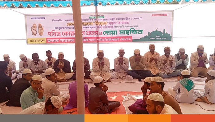মঙ্গলবার সকাল ১০টা থেকে দুপুর পর্যন্ত শহরের ডাঃ আবুল কাশেম ময়দানে বিএনপির জাতীয় নির্বাহী কমিটির অন্যতম সদস ফয়সাল আলিমের আয়োজনে কোরআন খতম ও দোয়া মাহফিল অনুষ্ঠিত হয়।