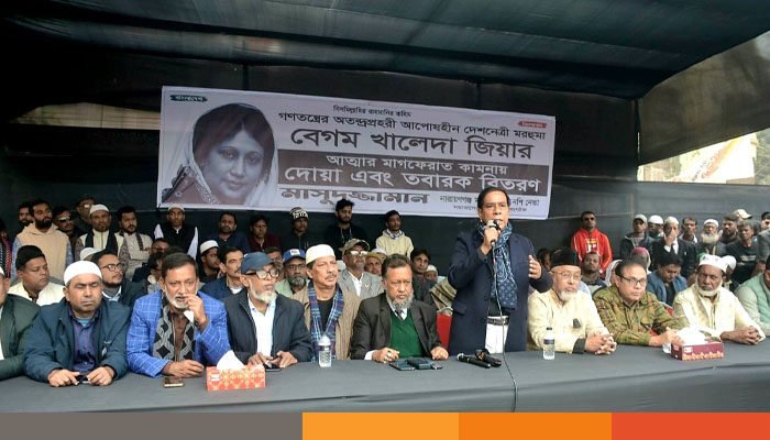 দোয়া মাহফিলে প্রধান অতিথির বক্তব্যে মাসুদুজ্জামান বলেন, “দেশের ইতিহাসের সবচেয়ে নির্যাতিত, আপসহীন ও সাহসী জননেত্রী দেশমাতা বেগম খালেদা জিয়ার ইন্তেকাল জাতির জন্য এক অপূরণীয় ক্ষতি। তিনি এমন একজন নেতৃত্বের প্রতীক, যিনি স্বামী, সন্তান ও নিজের ব্যক্তিগত স্বাধীনতা হারানোর গভীর বেদনা বুকে ধারণ করেও কখনো স্বৈরাচারী শক্তির কাছে মাথা নত করেননি।”