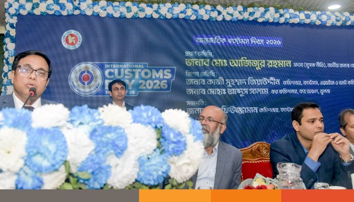 ‘অতন্দ্র প্রহরা আর দৃঢ় অঙ্গীকারে দেশের সুরক্ষায় কাস্টমস’ প্রতিপাদ্যে খুলনায় আন্তর্জাতিক কাস্টমস দিবস-২০২৬ পালিত হয়েছে। দিবসটি উপলক্ষে সোমবার (২৬ জানুয়ারি) সকালে নগরীরর একটি অভিজাত হোটেলে সেমিনার ও আলোচনা সভা অনুষ্ঠিত হয়।
