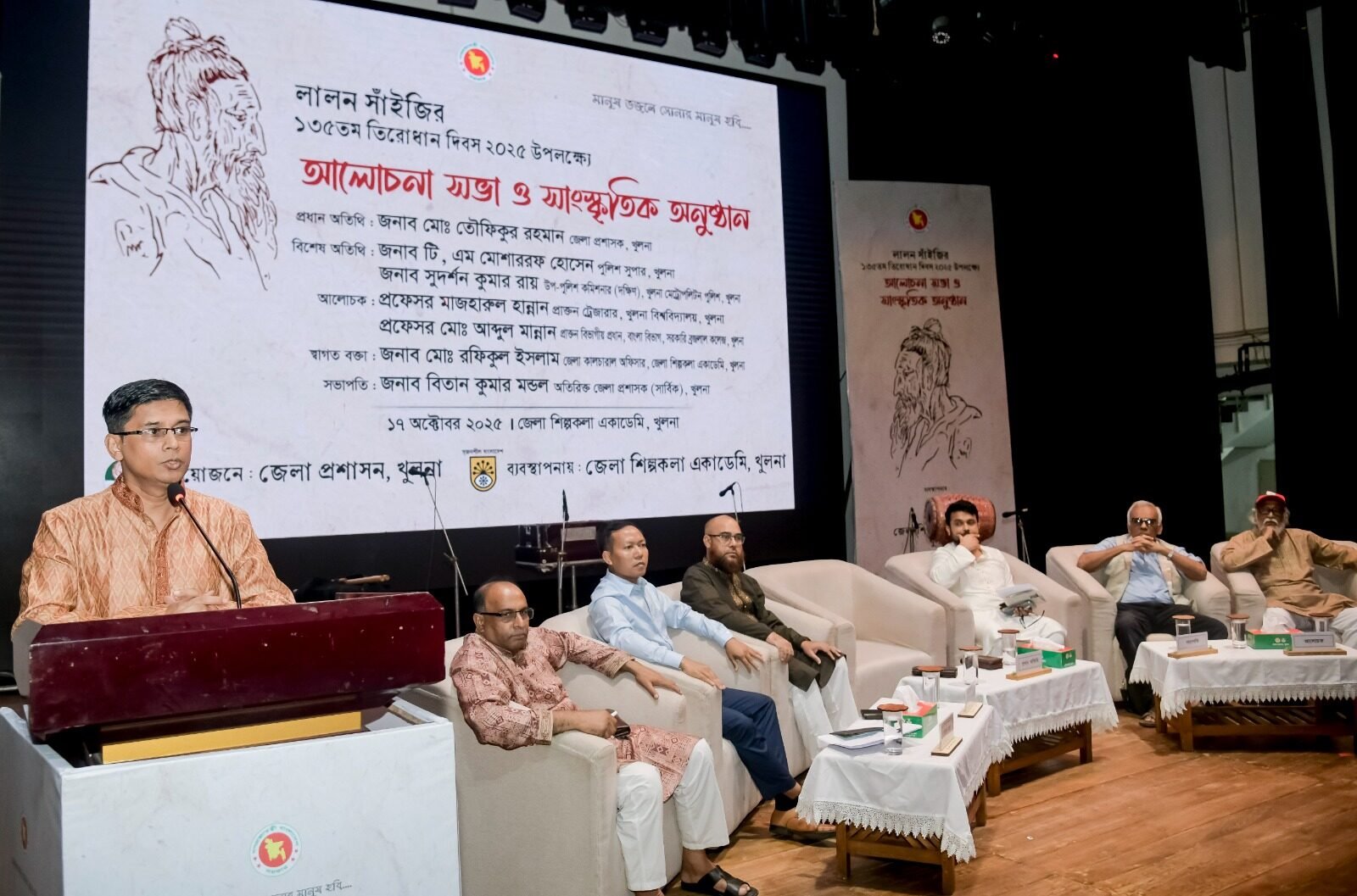 খুলনা জেলা প্রশাসনের উদ্যোগে লালন তিরোধান দিবস, ২০২৫ উপলক্ষ্যে আলোচনা সভা জেলা শিল্পকলা একাডেমি অডিটোরিয়ামে শুক্রবার (১৮অক্টোবর) সন্ধ্যায় অনুষ্ঠিত হয়। অনুষ্ঠানে প্রধান অতিথি ছিলেন খুলনার জেলা প্রশাসক মোঃ তৌফিকুর রহমান।