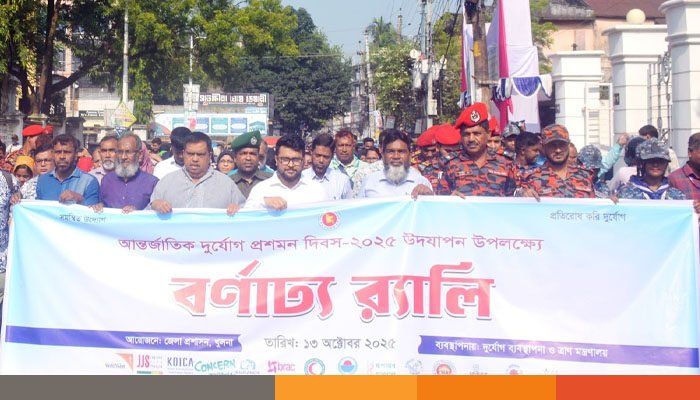 ‘সমন্বিত উদ্যোগ, প্রতিরোধ করি দুর্যোগ’ প্রতিপাদ্য নিয়ে সোমবার খুলনায় আন্তর্জাতিক দুর্যোগ প্রশমন দিবস পালন করা হয়।
