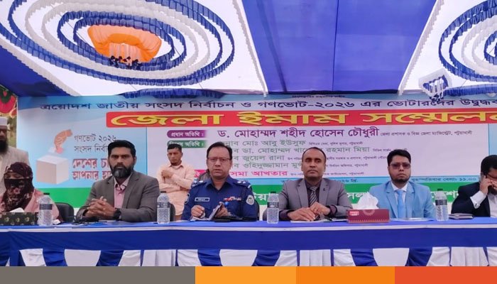 আসন্ন এয়োদশ জাতীয় সংসদ নির্বাচন ও গণভোট ২০২৬ উপলক্ষে ভোটারদের সচেতন ও উদ্বুদ্ধ করতে পটুয়াখালীতে জেলা ইমাম সম্মেলন অনুষ্ঠিত হয়েছে।