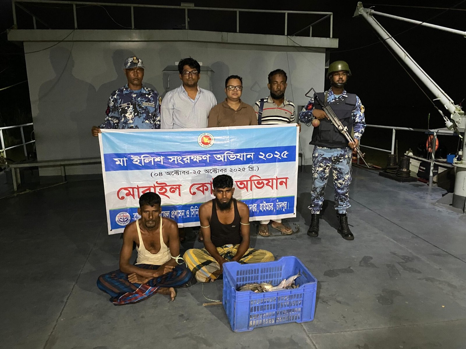 অভিযান প্রসঙ্গে মৎস্য কর্মকর্তা এ.বি.এম. আশরাফুল হক বলেন, আমরা মাঝির বাজার সংলগ্ন এলাকায় মাওয়া থেকে আগত ২০০ সিসির স্পীড বোটের মাধ্যমে অবৈধভাবে ইলিশ শিকার করার খবরে নদীতে অভিযান পরিচালনা করি। পরে আমাদের টিম ২ জন আসামীসহ ২০০ সিসির একটি স্পীডবোট আটক করতে সক্ষম হয়। এছাড়াও এই বোট থেকে প্রায় ১০০০ মিটার কারেন্ট জাল জব্দ করা হয়।