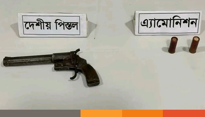 শনিবার ভোরে উপজেলার মটমুড়া ইউনিয়নের চরগোয়াল গ্রামের আতিয়ার রহমানের কলাবাগানে অভিযান চালিয়ে পরিত্যক্ত অবস্থায় ১টি দেশীয় পিস্তল ও ২ রাউন্ড গুলি উদ্ধার করা হয়।