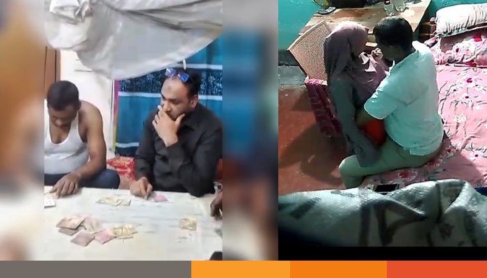 একটি দুই মিনিট ২৩ সেকেন্ডের ভিডিওতে দেখা যায়, একটি লম্বা টেবিল। টেবিল ঘেঁষে চারদিকে চেয়ার সাজানো। চেয়ারে পাঁচ থেকে ছয়জন বসে আছেন। পাশে পুলিশের পোশাকে একজন দাঁড়িয়ে আছেন। কেউ টি শার্ট কেউ গেঞ্জি, কেউ পুলিশের পোশাক পড়ে আছেন। একজনের মাথার ওপরের দিকে কালো চশমা। প্রত্যেকের সামনে টেবিলে একটি করে মানি ম্যাগ। টেবিলের চারপাশে বসে টেবিলের ওপরে তাস ও টাকা। চেয়ারে বসে টেবিল থেকে তাস নিচ্ছে। মুখে ১৭,১৮, ২০ শোনা যাচ্ছে। একটু পর পর মানিব্যাগ থেকে কেউ টাকা বের করে টেবিলের ওপর রাখছেন। কেউ তাস হাতে নিচ্ছেন। টেবিলের ওপর ১০ টাকা, ২০ টাকা, ৫০০ টাকা ও ১ হাজার টাকার অনেক নোট ছড়িয়ে ছিটিয়ে আছে।