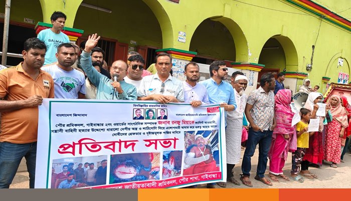 গাইবান্ধায় শ্রমিক নেতার ওপর আ’লীগের হামলার প্রতিবাদে ও দোষীদের দ্রুত গ্রেফতার করে দৃষ্টান্তমূলক শাস্তির দাবিতে প্রতিবাদ সভা অনুষ্ঠিত হয়েছে।