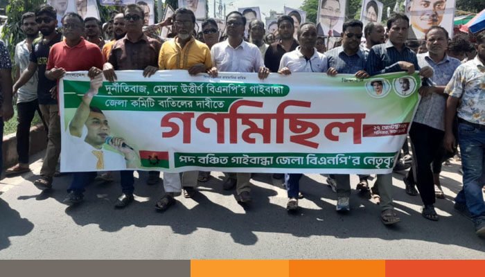 গাইবান্ধায় মেয়াদ উত্তীর্ণ কমিটি বাতিলের দাবিতে বিএনপির গণমিছিল