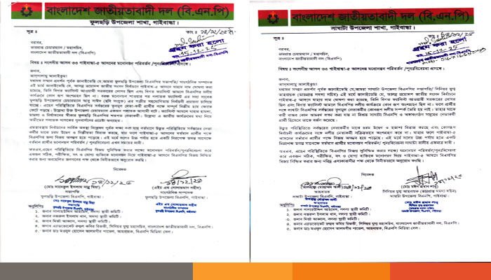 গাইবান্ধা ৫ আসনের বিএনপির মনোনয়ন পরিবর্তন চেয়ে কেন্দ্রে আবেদন