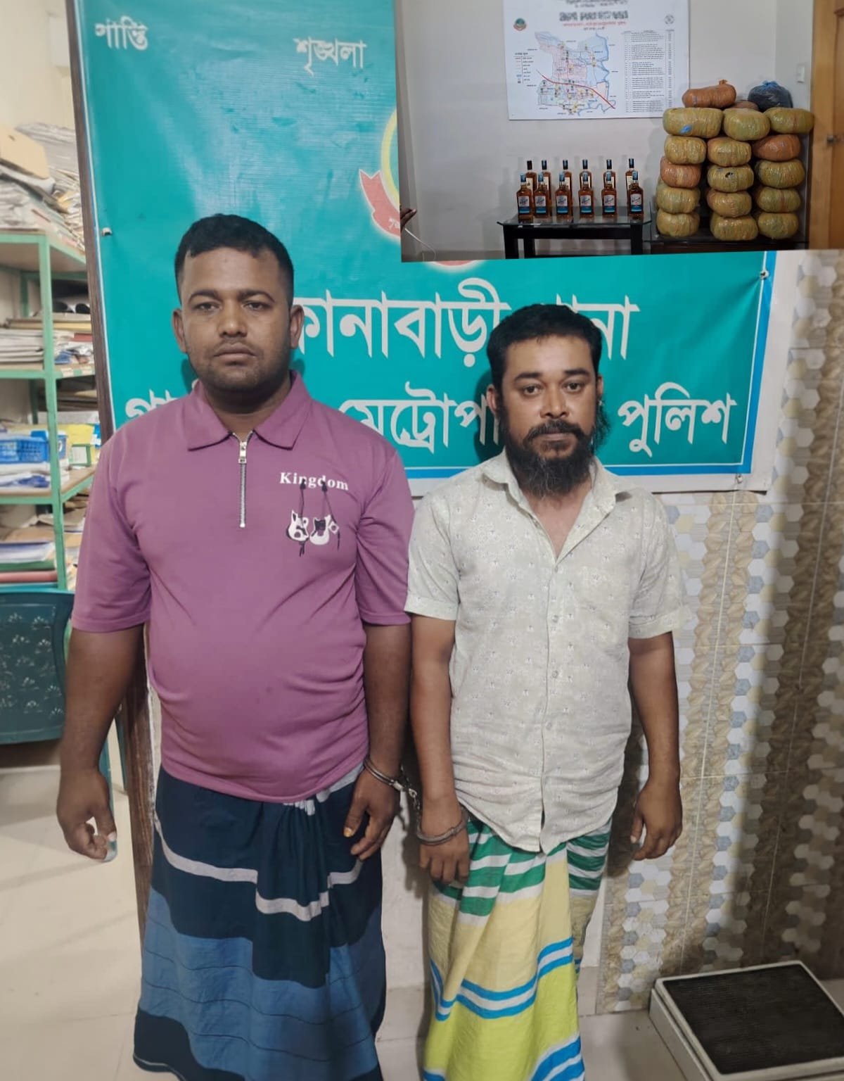 গাজীপুর মহানগরীর কোনাবাড়ী থানাধীন ৯ নং ওয়ার্ড কুদ্দুসনগর এলাকার কাঠালবাগান এলাকায় মাদকবিরোধী বিশেষ অভিযান চালিয়ে বিপুল পরিমাণ গাঁজা ও বিদেশি মদসহ দুই মাদক কারবারিকে আটক করেছে পুলিশ।