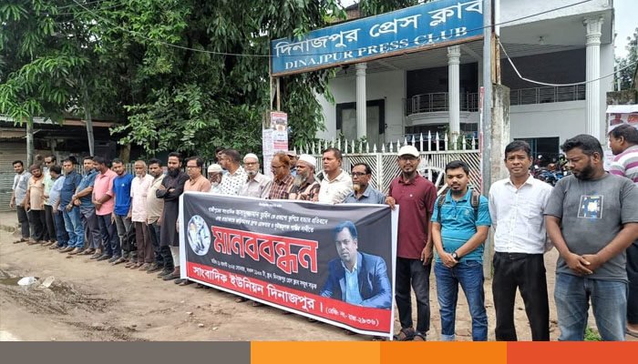 গাজীপুরে সাংবাদিক আসাদুজ্জামান তুহিন হত্যার প্রতিবাদে দিনাজপুরে মানববন্ধন