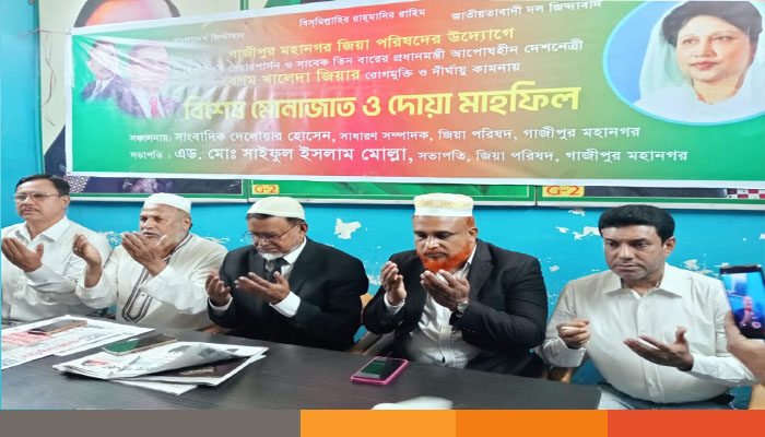 গাজীপুরে জিয়া পরিষদের উদ্যোগে বেগম জিয়ার সুস্থতা কামনায় দোয়া