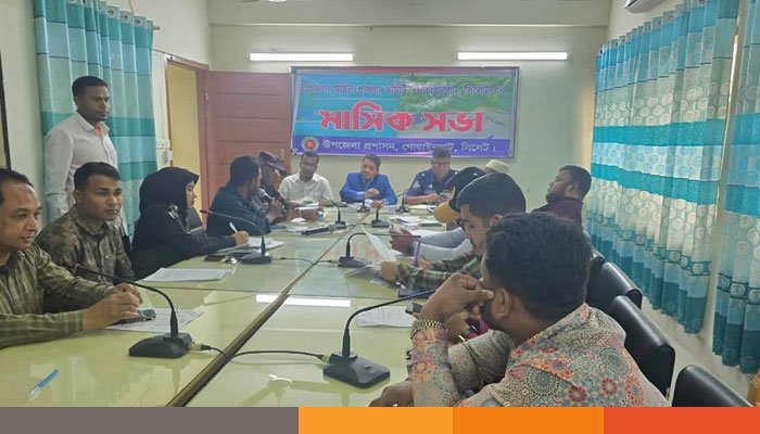 সিলেটের গোয়াইনঘাট উপজেলায় আইন-শৃঙ্খলা পরিস্থিতি স্বাভাবিক ও উন্নয়ন কার্যক্রমকে আরও গতিশীল করতে উপজেলা প্রশাসনের উদ্যোগে মাসিক সভা অনুষ্ঠিত হয়েছে।