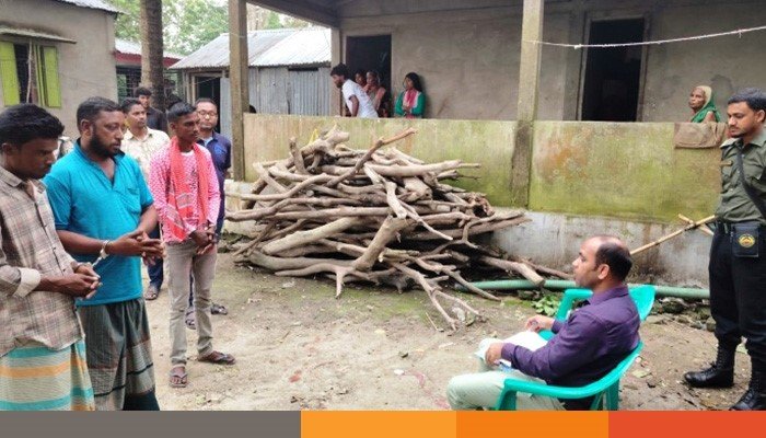 আটকের পর তাদের কাছ থেকে গাঁজা সেবনের বিভিন্ন সরঞ্জাম এবং দেশীয় চোলাই মদ উদ্ধার করে আইনশৃঙ্খলা রক্ষাকারী বাহিনী।