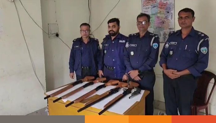 পুলিশ জানায়, গোপন সংবাদের ভিত্তিতে কবরস্থানে অভিযান চালিয়ে কাগজে মোড়ানো অবস্থায় ৫টি রাইফেল ও ১টি এলজি উদ্ধার করা হয়। অস্ত্রগুলো মাটির নিচে পুঁতে রাখা ছিল।