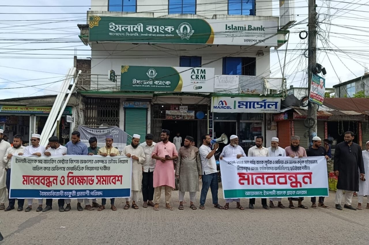 ২০১৭-২০২৪ সাল পর্যন্ত ইসলামী ব্যাংকে নিয়োগকৃত অবৈধ ও অদক্ষ কর্মকর্তাদের অনতিবিলম্বে ছাটাইয়ের দাবীতে চরফ্যাশনে মানববন্ধন করা হয়েছে।