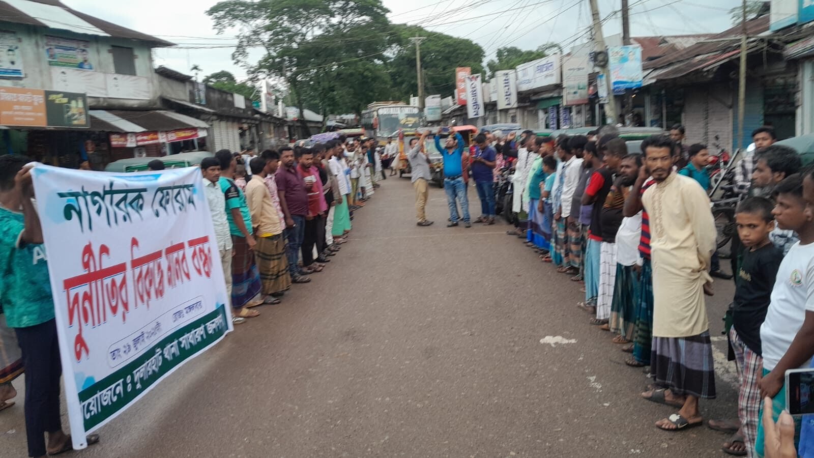আজ মঙ্গলবার (২৯ জুলাই) বিকাল ৫ টার দিকে দুলার হাট থানা সাধারণ জনগণের আয়োজনে দুলারহাট বাজারে কয়েকশত মানুষের অংশ গ্রহণে এই মানববন্ধন অনুষ্ঠিত হয়।