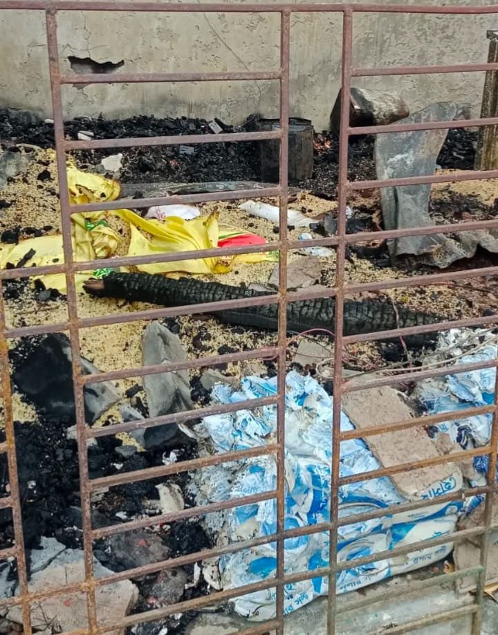 গভীর রাতে হঠাৎ আগুন দেখে ছুটে আসেন স্থানীয়রা, কিন্তু ততক্ষণে আগুন ভয়াবহ রূপ ধারণ করে।
