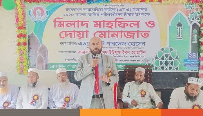 দক্ষিণ বাংলার ঐতিহ্যবাহী বিদ্যাপীঠ চরফ্যাশন কারামাতিয়া কামিল (এমএ) মাদ্রাসার ২০২৫ সালের আলিম পরীক্ষার্থীদের বিদায় উপলক্ষে মিলাদ ও দোয়া মোনাজাত অনুষ্ঠিত হয়েছে।