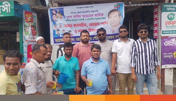চাঁদপুরে গরমে খাবার পানীয় নিয়ে তৃষ্ণার্ত মানুষের পাশে স্বেচ্ছাসেবকদল