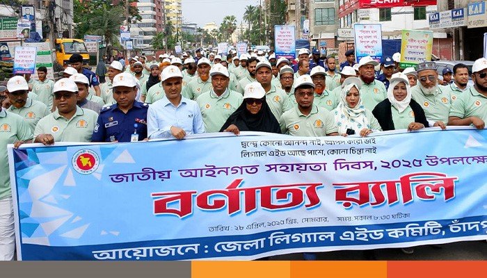 এদিকে ‘দ্বন্দ্বে কোনো আনন্দ নাই, আপস করো ভাই, লিগ্যাল এইড আছে পাশে, কোনো চিন্তা নাই’ প্রতিপাদ্য সামনে রেখে সকালে ‘জাতীয় আইনগত সতায়তা দিবস-২০২৫’ পালন করা হয়েছে। এতে জেলা জজ আদালতের সামনে বেলুন ও পায়রা উড়িয়ে র্যালির উদ্বোধন করেন চাঁদপুরের সিনিয়র জেলা ও দায়রা জজ সামছুন্নাহার। র্যালি শেষে জেলা আইনজীবী সমিতি মিলনায়তনে লিগ্যাল এইড দিবস উপলক্ষে আলোচনা সভা হয়।