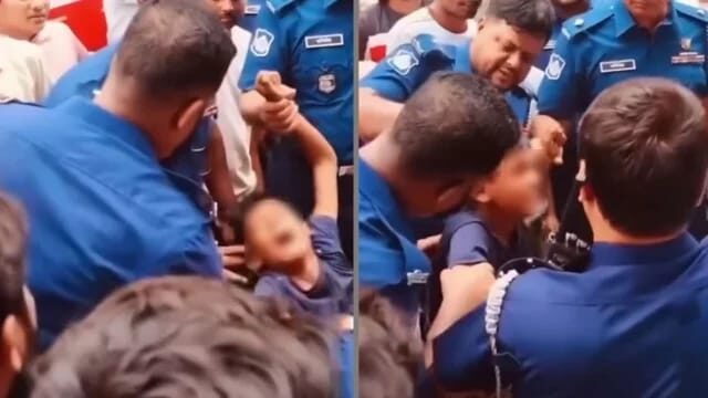 ২৮ সেকেন্ডের ওই ভিডিওতে দেখা যায়, এক শিশুর হাত ধরে আছেন সদর থানার ভারপ্রাপ্ত কর্মকর্তা (ওসি) মতিউর রহমান। শিশুটির গায়ে থাকা টি-শার্টের গলার অংশ ধরে আছেন আরেকজন পুলিশ সদস্য। একপর্যায়ে চুল ধরে পেছনের দিকে বল প্রয়োগ করছেন সদর থানার উপপরিদর্শক (এসআই) আব্দুল হাই। পুরো ভিডিওতেই শিশুটি কান্নারত অবস্থায় ছিল।