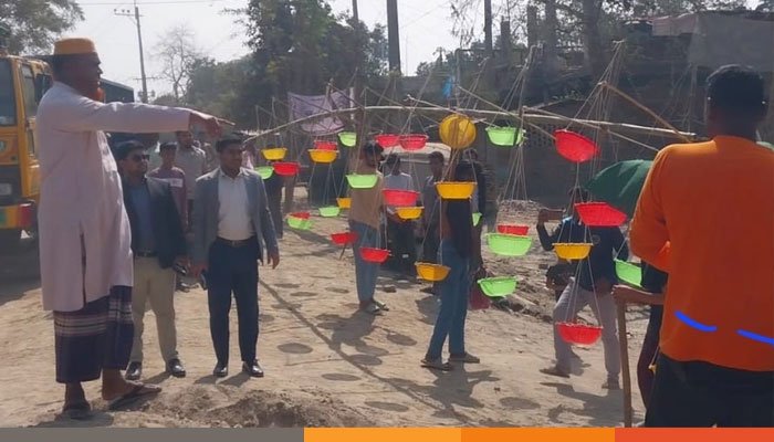সংসদীয় আসন ৪৩, চাঁপাইনবাবগঞ্জ-১ শিবগঞ্জ আসনে বিভিন্ন জায়গায় জামায়াতে ইসলাম মনোনীত প্রার্থী মাওলানা কেরামত আলীর নির্বাচনী প্রচারণার উদ্দেশ্যে নিষিদ্ধ প্লাস্টিকের তৈরি দাঁড়িপাল্লার উঁচু টাওয়ার ভেঙে ফেলা শুরু করেছে নির্বাচনী দায়িত্বে থাকা একজন নির্বাহী ম্যাজিস্ট্রেটের নেতৃত্বে আইনশৃঙ্খলা বাহিনী।