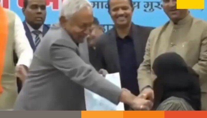 সামাজিক যোগাযোগমাধ্যমে ছড়িয়ে পড়া অনুষ্ঠানের একটি ভিডিওতে দেখা যায়, ৭৪ বছর বয়সী জনতা দল-ইউনাইটেড (জেডিইউ) প্রধান নীতিশ কুমার একজন আয়ুষ (আয়ুর্বেদ, যোগ ও ন্যাচারোপ্যাথি, ইউনানি, সিদ্ধা ও হোমিওপ্যাথি) চিকিৎসককে সনদ দিচ্ছিলেন। সে সময় ইশারায় ওই চিকিৎসককে তার হিজাব সরাতে বলেন। সেই নারী প্রতিক্রিয়া জানানোর আগেই নীতিশ কুমার নিজে হাত বাড়িয়ে তার হিজাব নামিয়ে দেন, ফলে তার মুখ ও থুতনি দেখা যায়।