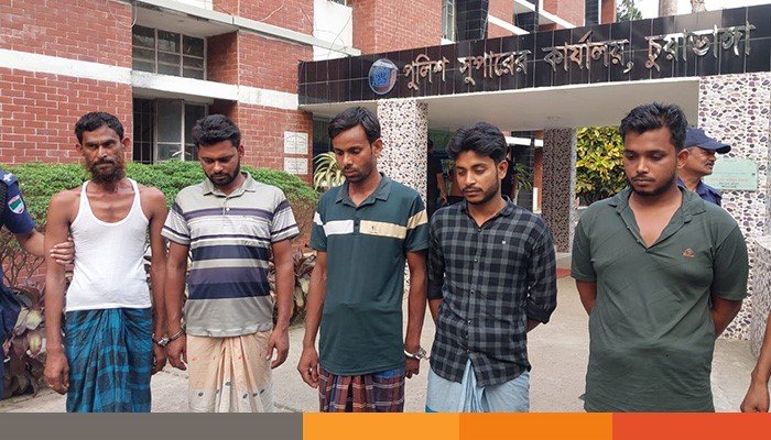 গ্রেফতারকৃতরা হলেন- চুয়াডাঙ্গা সদর উপজেলার সাতগাড়ী গ্রামের ফয়সালের স্ত্রী কবিতা, আলমডাঙ্গা উপজেলার খাদিমপুর গ্রামের মিজান, সামাদ আলী, আদম, শাহজাহান এবং শিয়ালমারি গ্রামের আব্দুস সালাম।