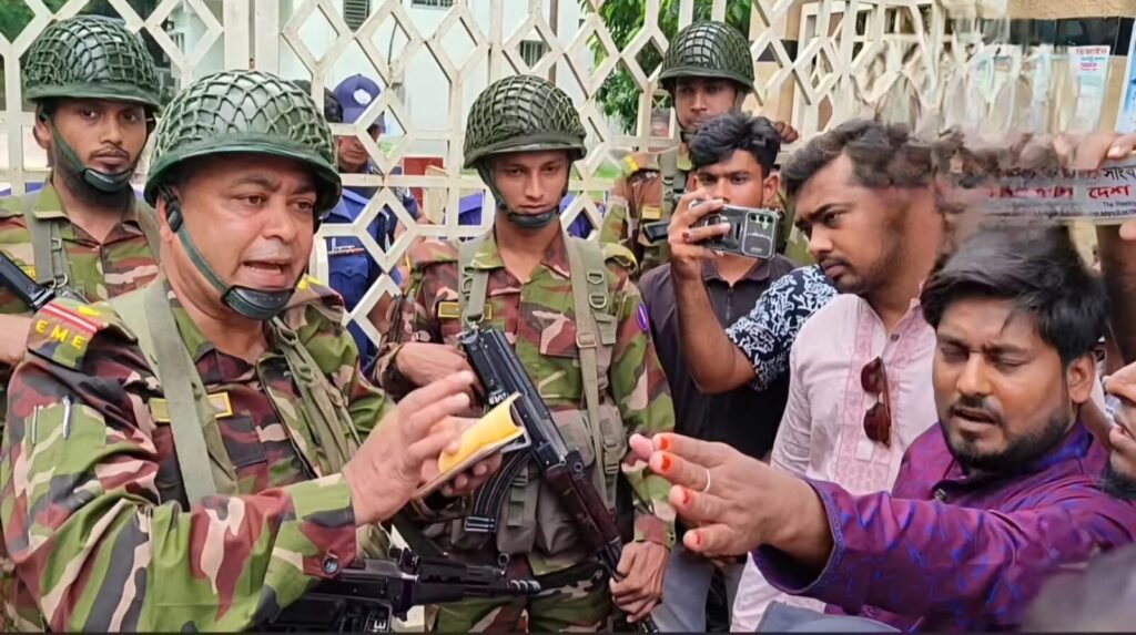সেনাবাহিনীর সদস্যরা আন্দোলনকারীদের সঙ্গে কথা বলেন এবং সহিংসতা এড়িয়ে সমাধানের আশ্বাস দেন। তবে আন্দোলনকারীরা অভিযোগ করেন, ডিবি পুলিশের ভূমিকা পক্ষপাতমূলক। কেউ কেউ ভয়ভীতির শিকার হচ্ছেন বলেও দাবি করেন তারা।