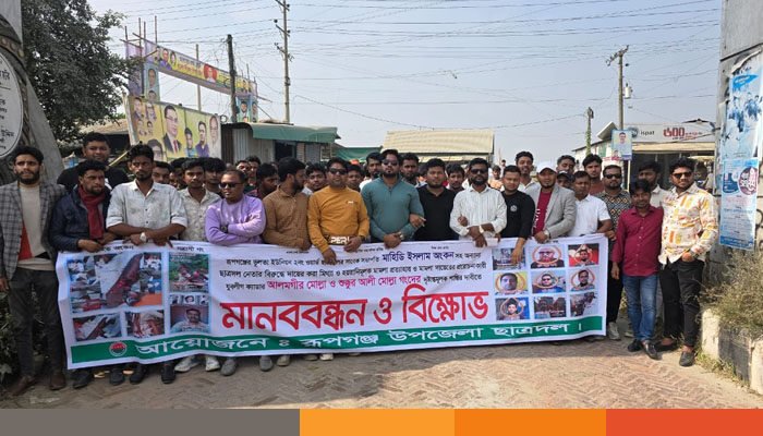 ছাত্রদল নেতাকর্মীর বিরুদ্ধে মামলা প্রত্যাহারের দাবীতে রূপগঞ্জে মানববন্ধন ও বিক্ষোভ