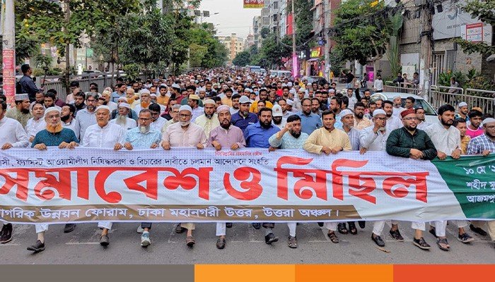 আজ শনিবার বিকাল ৫টা ৩০ মিনিটে রাজধানীর উত্তরায় শহীদ মীর মুগ্ধ চত্ত্বরে নাগরিক উন্নয়ন ফোরাম ঢাকা মহানগর উত্তর আয়োজিত আওয়ামী লীগ নিষিদ্ধ করার দাবিতে চলমান আন্দোলনে সংহতি জানিয়েছে মিছিল পরবর্তী সমাবেশে তিনি এসব কথা বলেন। ফোরামের উত্তরা অঞ্চল পরিচালক জামাল উদ্দিনের সভাপতিত্বে সমাবেশে এবং এডভোকেট ইব্রাহিম খলিলের সঞ্চালনায় এতে উপস্থিত ছিলেন কেন্দ্রীয় মজলিসে শূরা সদস্য ও ঢাকা মহানগরী উত্তরের নায়েবে আমীর ইঞ্জিনিয়ার গোলাম মোস্তফা, শ্রমিক কল্যাণ ফেডারেশনের ঢাকা মহানগরী উত্তরের সভাপতি মুহিব্বুল্লাহ, মাহবুবুল আলম মুকুল, মাজহারুল ইসলাম, আবু সাঈদ, জননেতা আশরাফুল হক, মতিউর রহমান প্রমূখ।