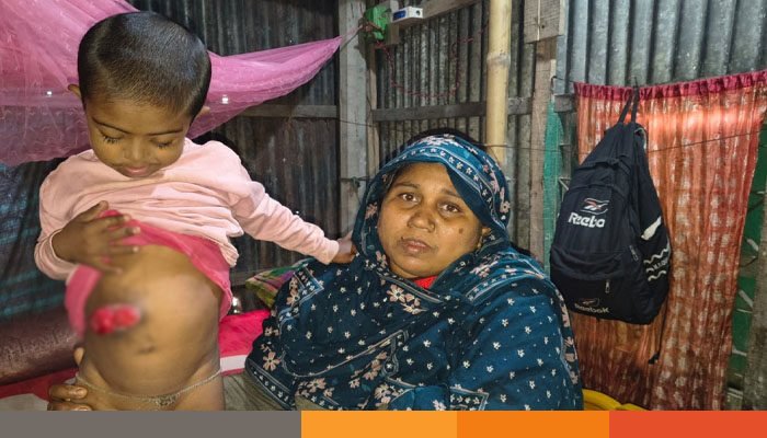 সাত বছর বয়সী ওমর ফারুক জন্ম থেকেই পায়ুপথহীন। স্বাভাবিকভাবে চলাফেরা তো দূরের কথা, প্রতিটি দিন কাটে তীব্র যন্ত্রণার মধ্যে। দীর্ঘমেয়াদি চিকিৎসা চালাতে গিয়ে এই দরিদ্র পরিবার তাদের গরু, আসবাবপত্রসহ সব সম্পদ বিক্রি করেছে। এখন আর নেই কোনো সম্বল।