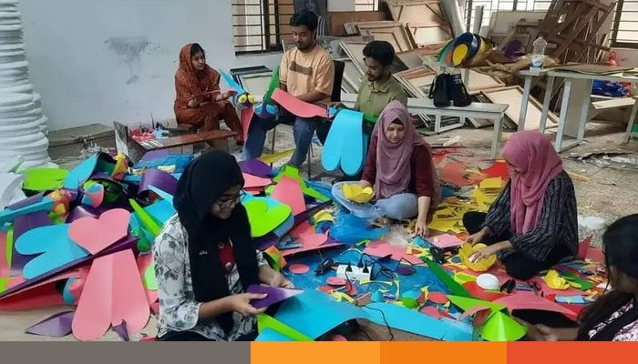 বাঙালির প্রাণের উৎসব পহেলা বৈশাখকে সামনে রেখে জগন্নাথ বিশ্ববিদ্যালয়ের চারুকলা অনুষদে এখন শেষ মুহূর্তের ব্যস্ততা চলছে। ১৪৩৩ বঙ্গাব্দকে বরণ করে নিতে বর্ণিল সাজে সাজানো হচ্ছে মঙ্গল শোভাযাত্রার প্রতিটি অনুষঙ্গ।